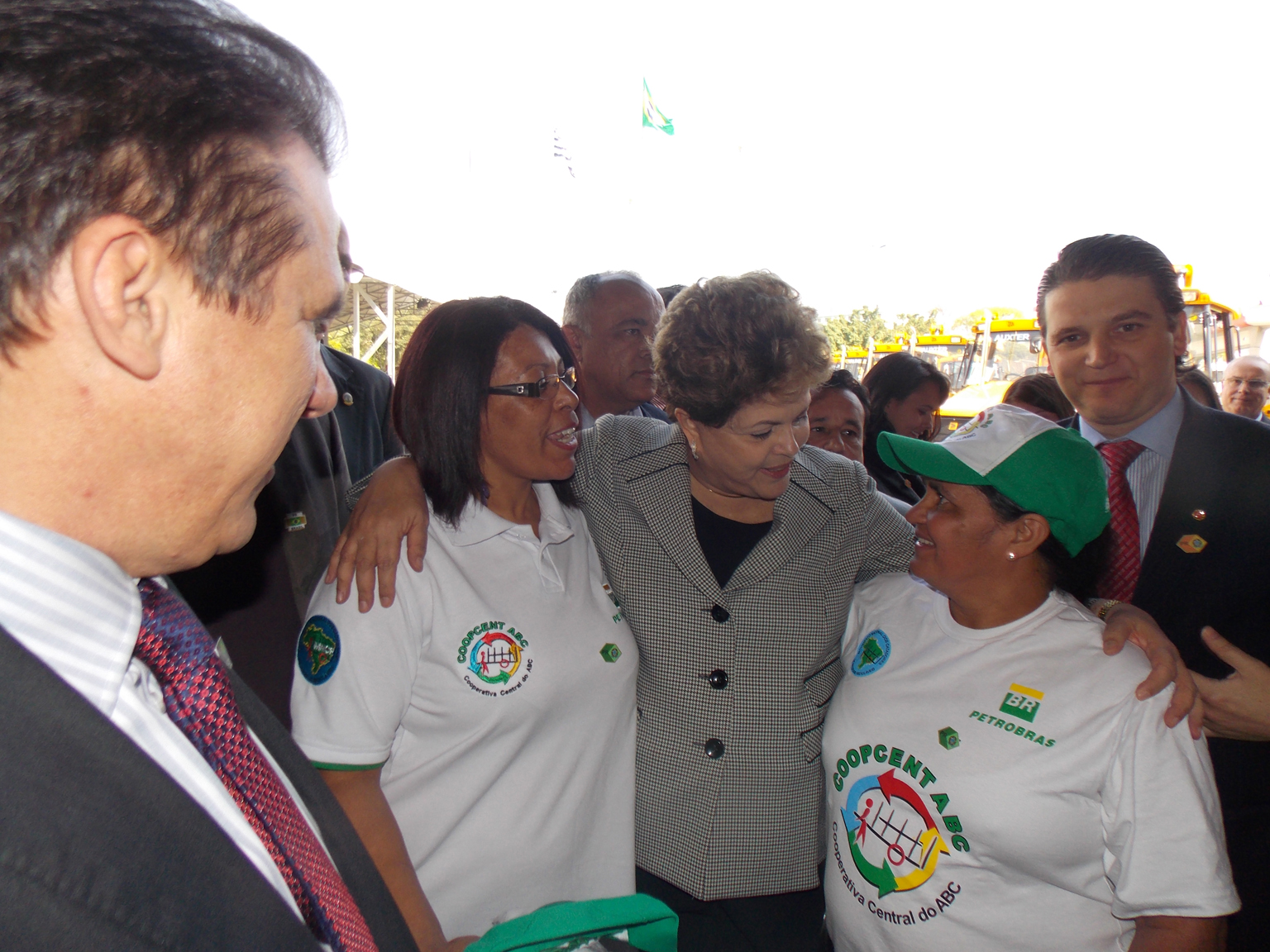 Esse encontro entre as catadoras e Dilma aconteceu no dia 19 de agosto no Paço Municipal de São Bernardo do Campo, quando o Governo Federal anunciou investimentos para a região nas áreas de mobilidade urbana e habitação e a Presidenta fez a entrega de 100 retroescavadeiras para vários municípios do interior do estado.