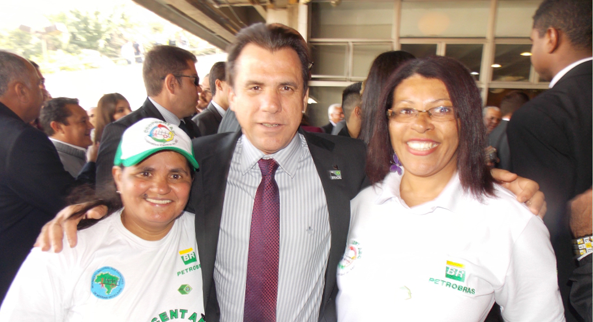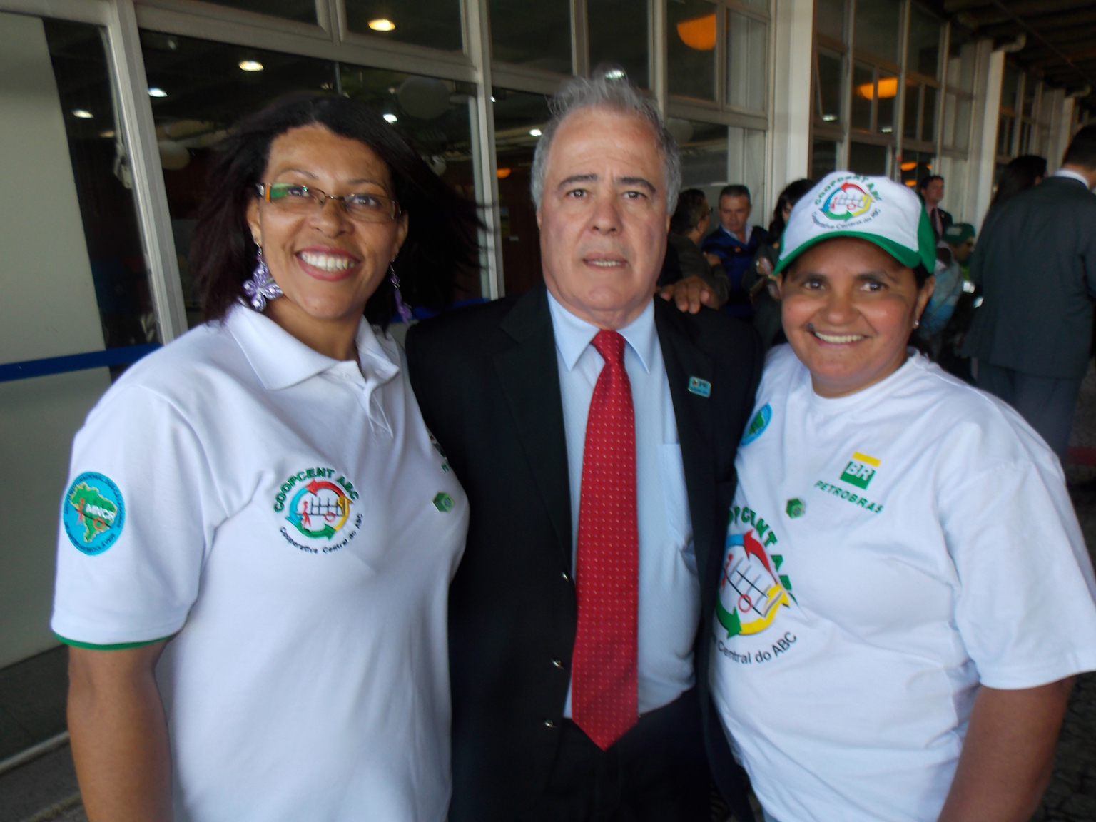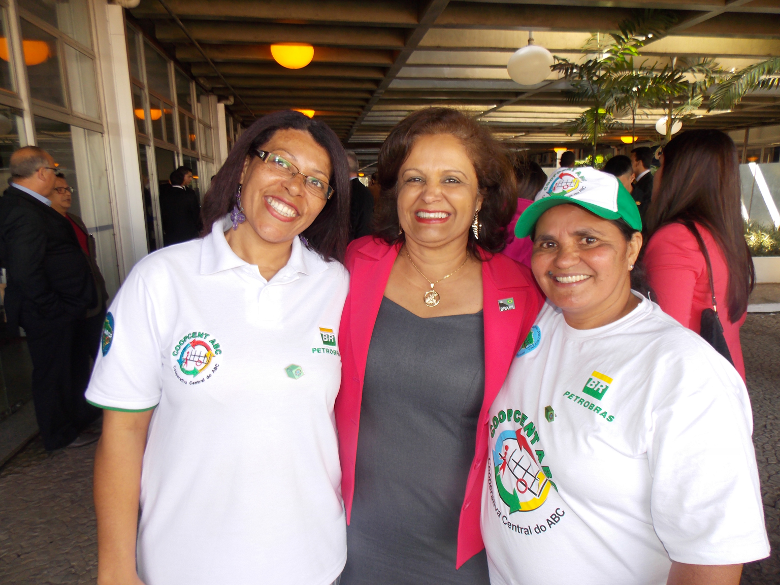 Representando a Coopcent ABC e o Movimento Nacional dos Catadores, as catadoras Vilma Moura e Francisca Maria Lima Araújo , agradeceram à Presidenta Dilma pela dedicação que o seu governo tem dado aos catadores e catadoras do Brasil.