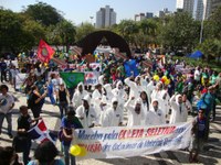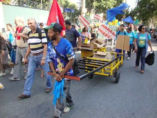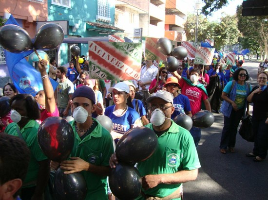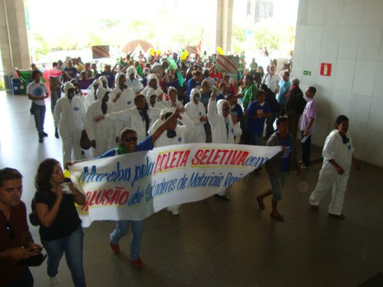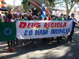 A capital mineira teve uma manhã diferente no último dia 6 de maio. As cores das bandeiras, camisetas e balões de ar faziam contraste com o triste cinza das ruas e do trânsito habitual. Faixas identificavam o motivo de cerca de duas mil pessoas estarem nas ruas naquele dia. “Marcha pela coleta seletiva com inclusão dos catadores”, “não à incineração” e “Deus recicla, o diabo incinera” eram os principais dizeres estampados pelos manifestantes majoritariamente catadores de materiais recicláveis de todas as regiões do estado de Minas Gerais.