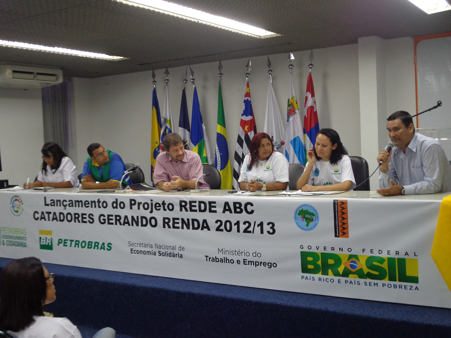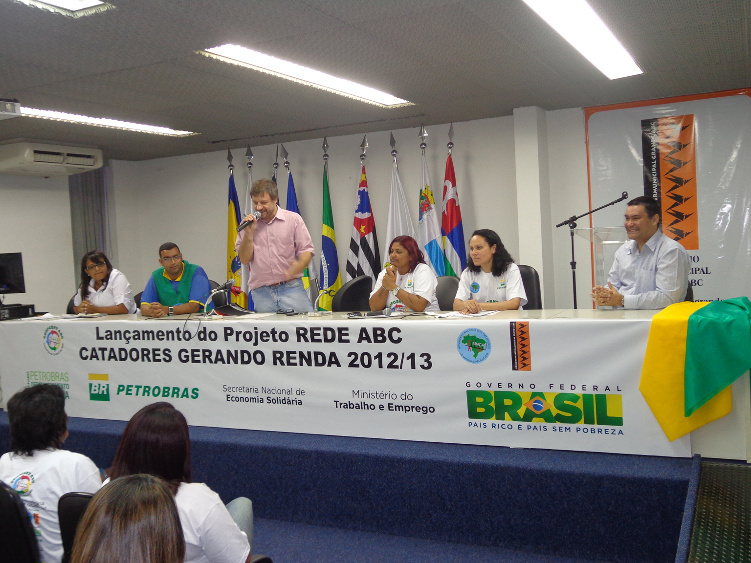 O lançamento do Projeto "Rede ABC Catadores Gerando Renda 2012/2013 aconteceu no dia 03 de maio no auditório do Consórcio Intermunicipal Grande ABC, em Santo André, e contou com a presença de aproximadamente 80 pessoas entre catadoras, catadores, representantes do MNCR, Rede Cata Sampa, Petrobras, Consórcio Intermunicipal Grande ABC, Prefeituras, Unisol Brasil, Islog e movimentos sociais da região.