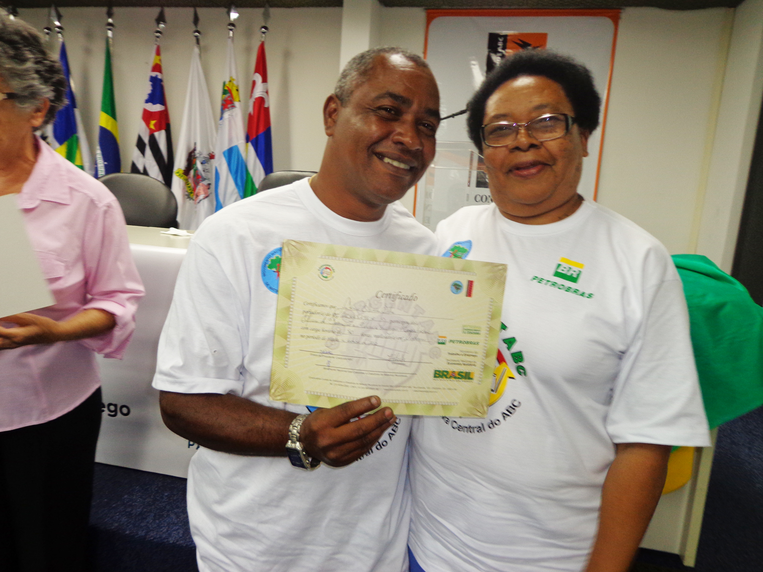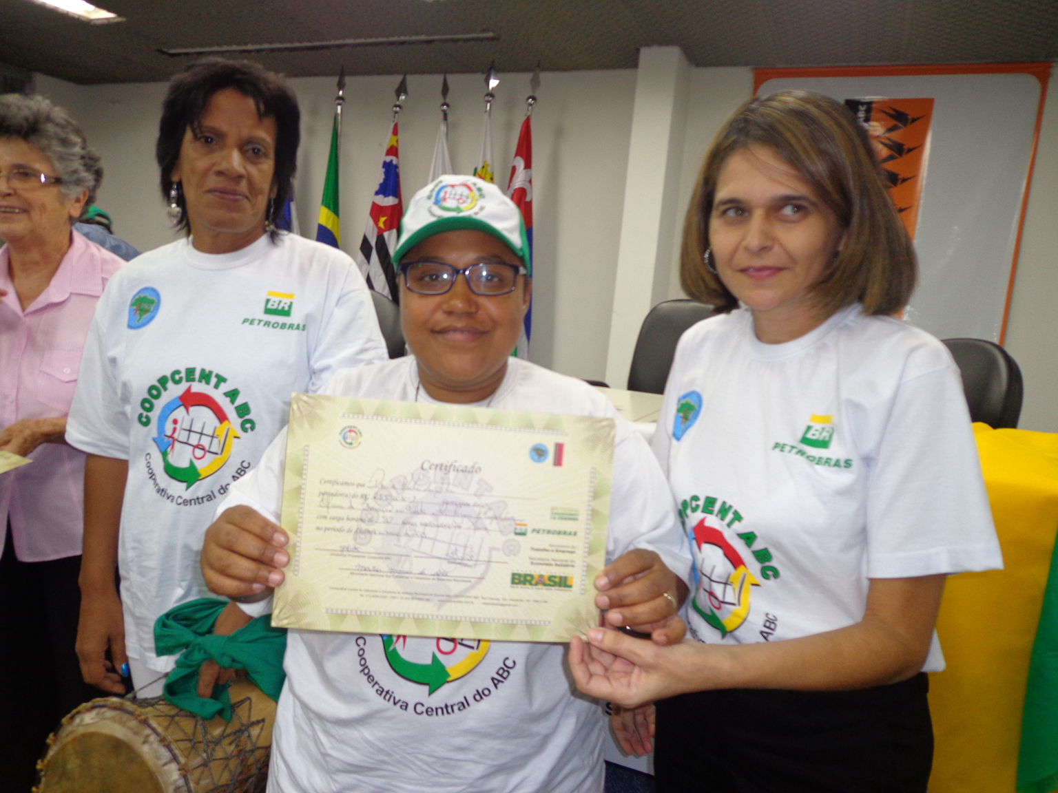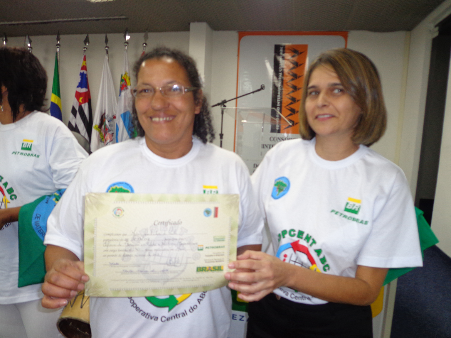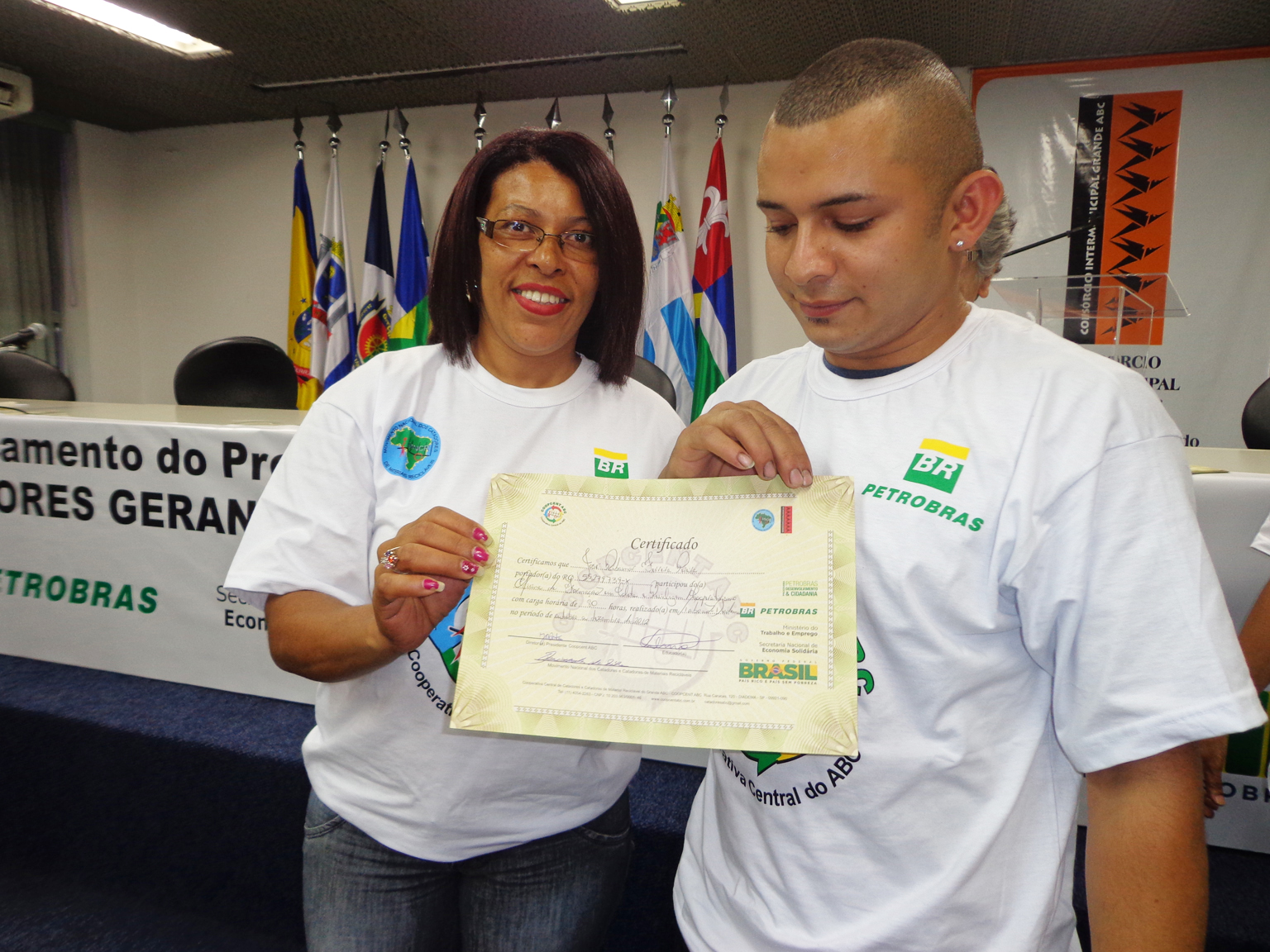Na segunda parte do evento, foi realizada entrega de certificados a catadoras e catadores que participaram em 2012 e 2013 do Projeto "Fortalecimento dos Catadores e Catadoras e Ampliação da Coleta Seletiva no Grande ABC", realizado em parceria entre a Coopcent ABC, Secretaria Nacional de Economia Solidaria - SENAES e a Petrobras.