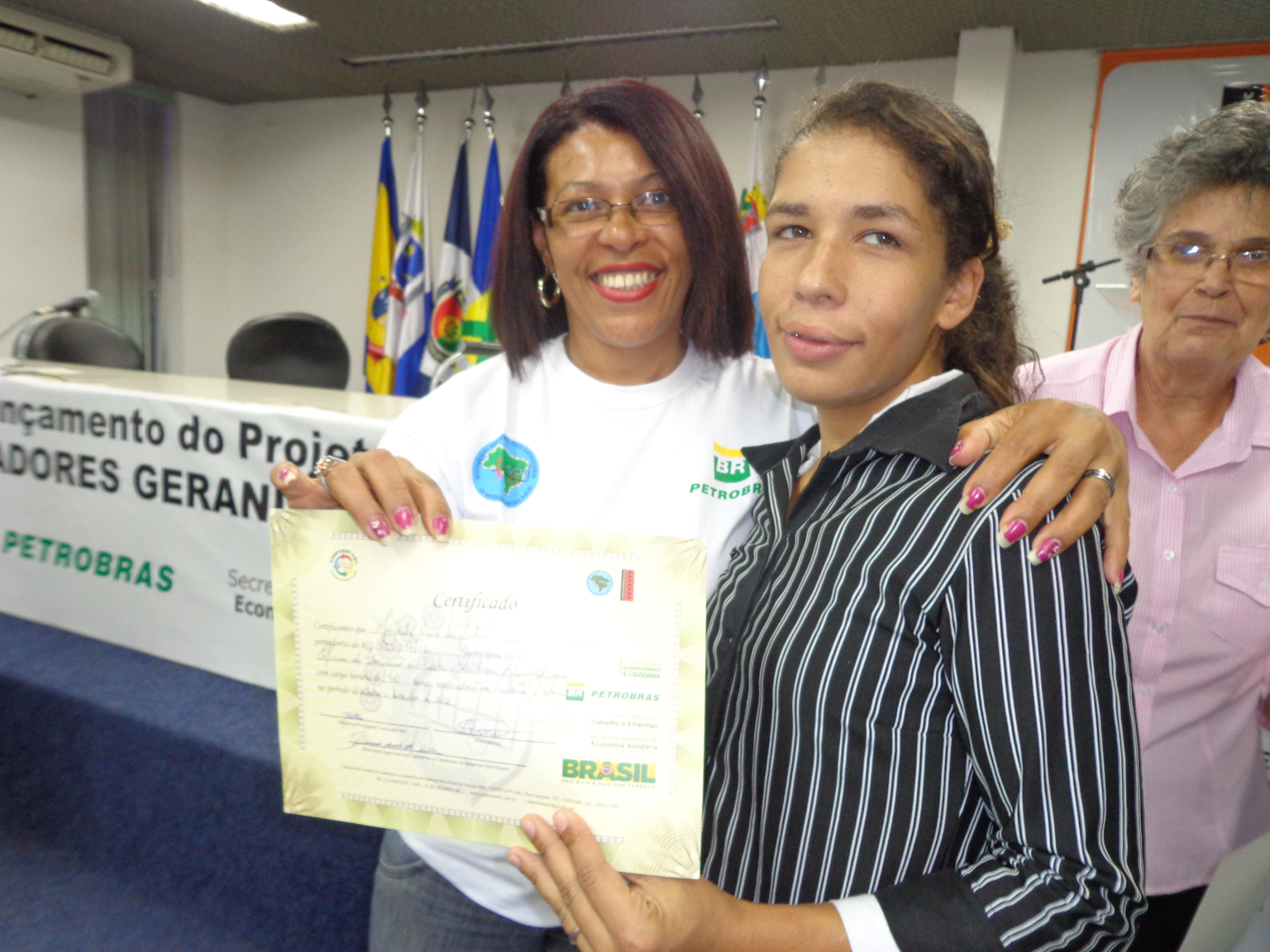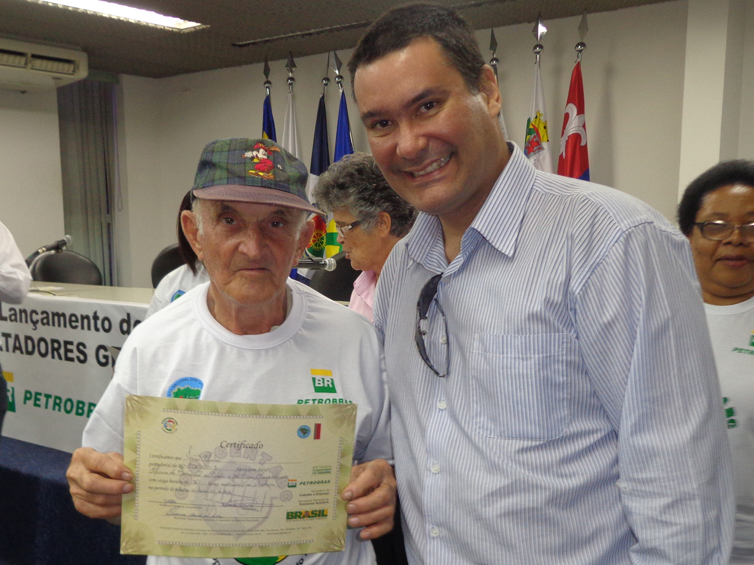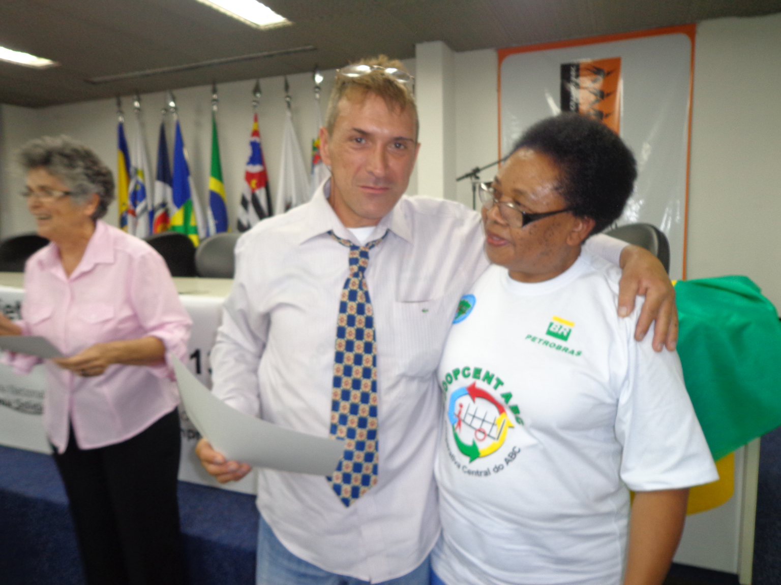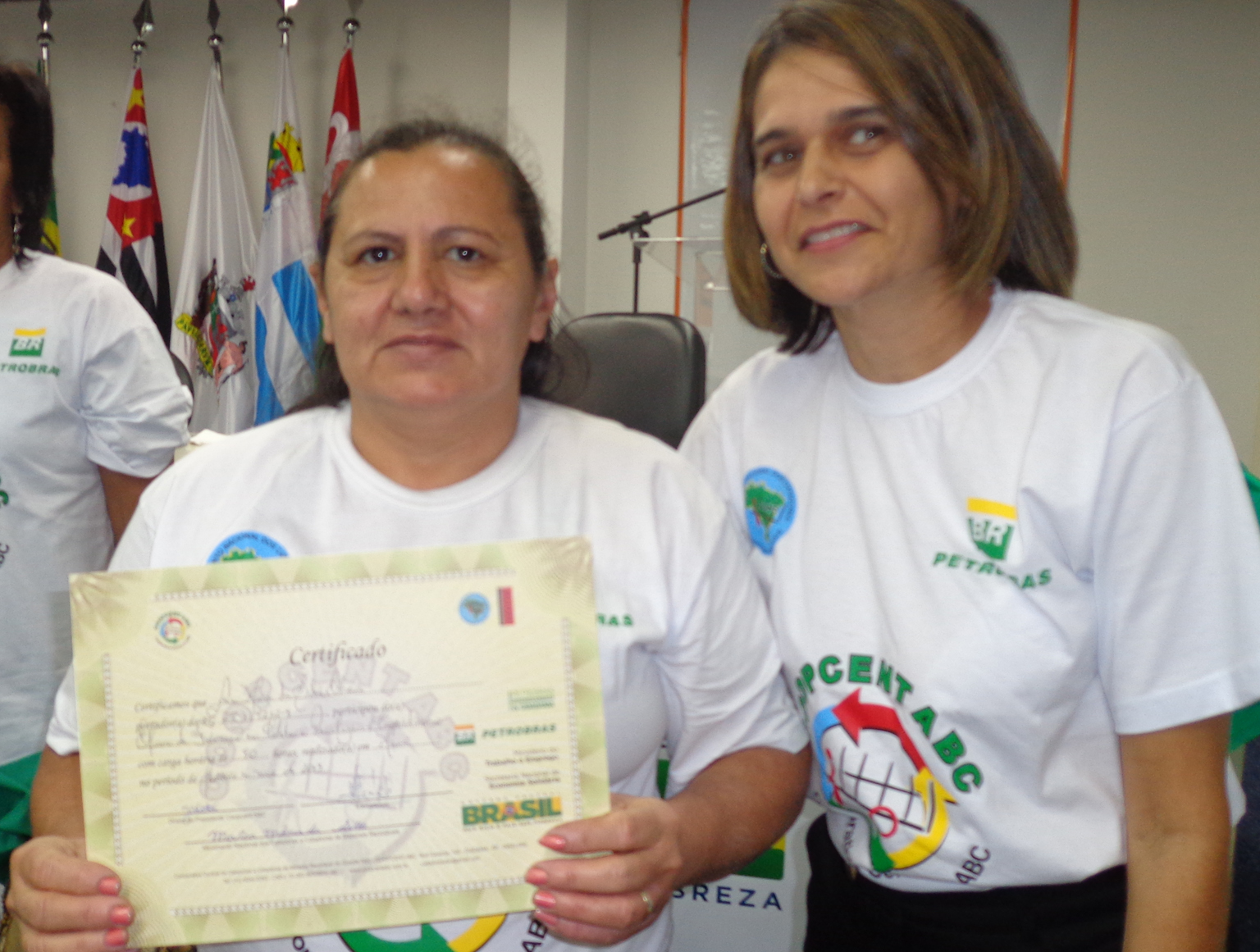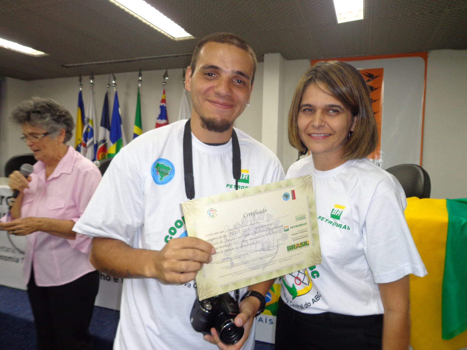 Na segunda parte do evento, foi realizada entrega de certificados a catadoras e catadores que participaram em 2012 e 2013 do Projeto "Fortalecimento dos Catadores e Catadoras e Ampliação da Coleta Seletiva no Grande ABC", realizado em parceria entre a Coopcent ABC, Secretaria Nacional de Economia Solidaria - SENAES e a Petrobras.
